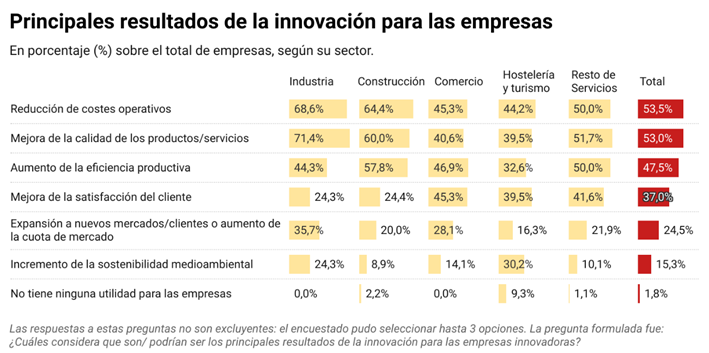 Sin embargo, la innovación se percibe mayoritariamente como una herramienta de optimización interna —reducción de costes, mejora de la calidad y eficiencia— más que como una vía directa para la expansión comercial o la sostenibilidad.